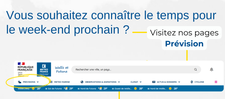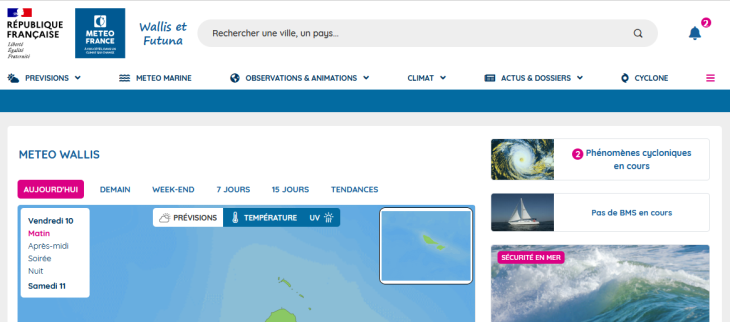 Les îles de Wallis-et-Futuna ont désormais leur site internet. Cet espace, dédié aux prévisions et au climat de Wallis-et-Futuna, a été pensé pour vous offrir une expérience de navigation agréable et intuitive.